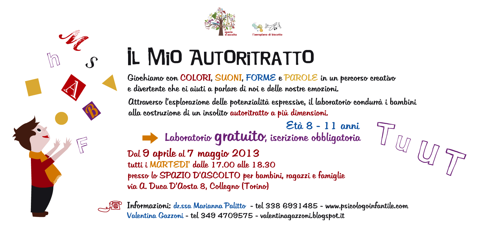 Valentina Gazzoni valentinagazzoni@yahoo.it tel 349 470 95 75 Marianna Palitto marianna.palitto@yahoo.com tel 338 693 14 85Pubblicato da marianna palitto | Filed under laboratorio